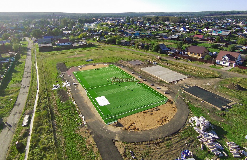 В настоящее время подрядчиком ведётся укладка искусственного футбольного покрытия и легкоатлетических дорожек. Готовы территория для установки уличных тренажёров и основание под спортивную площадку.