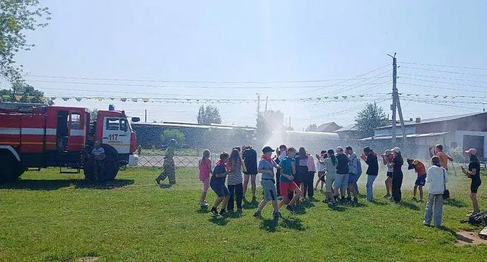 После испытаний школьников ждал приятный сюрприз, бойцы ПЧ-117 организовали для ребят импровизированный «фонтан» из рукава пожарного автомобиля.