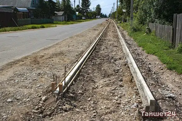 Сейчас принято решение сделать здесь асфальтированную дорожку. Строители ведут укладку бордюра.