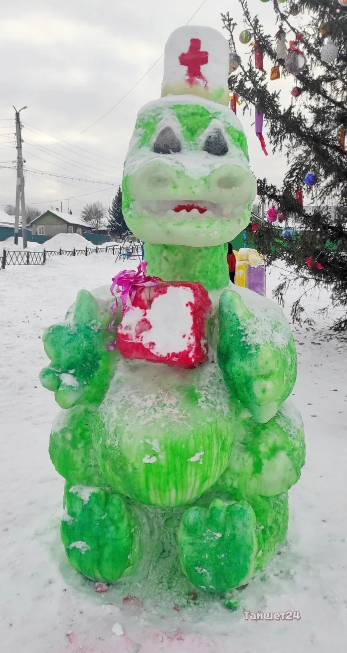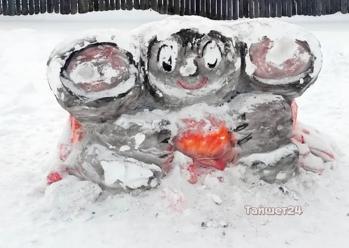 Меньше суток радовали жителей Бирюсинска снежные изваяния сказочных персонажей, построенные на местной площади.