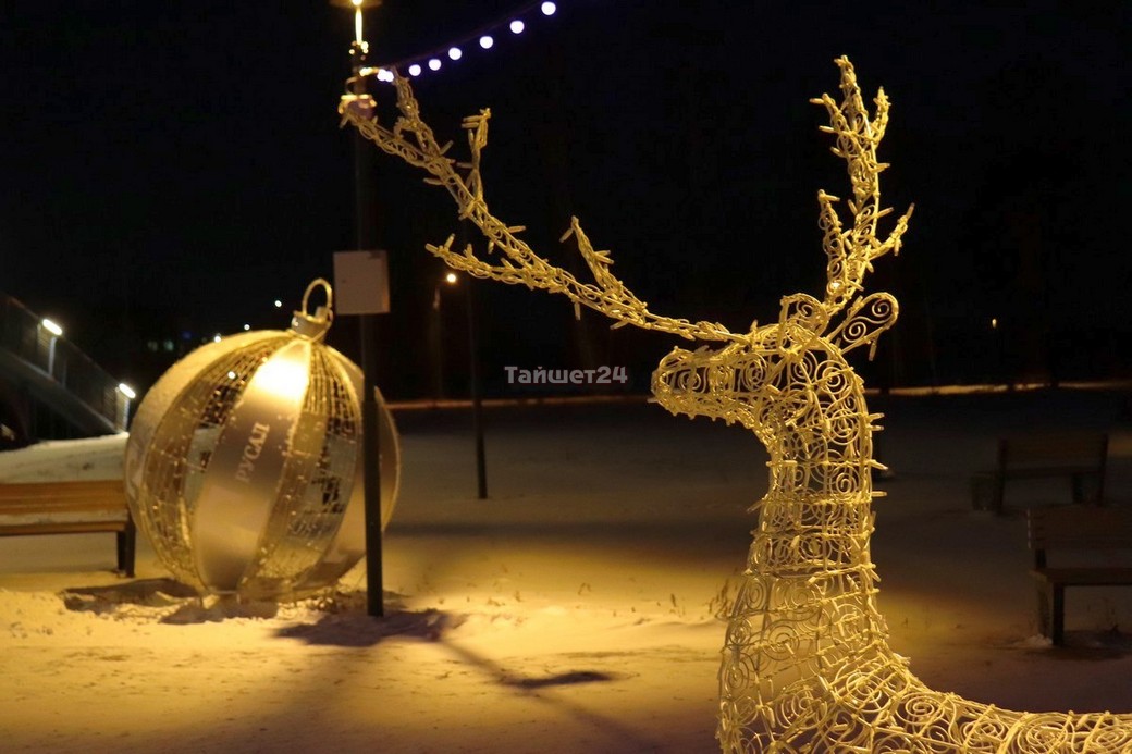 Новогодним настроением в Тайшете с каждым днём пахнет всё больше. В городском парке установили световые фигуры, которые для вас сфотографировал Андрей Кузнецов.