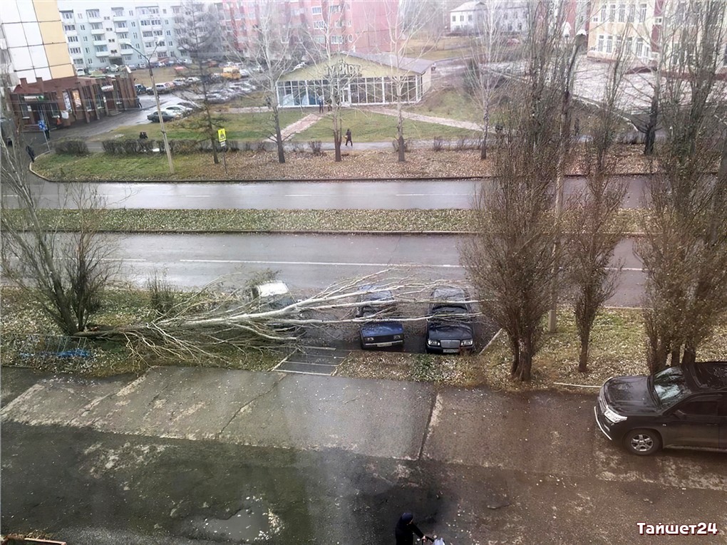 Взрослый тополь упал на парковку возле магазина «Ветеран» в микрорайоне Пионерный. Судя по снимкам очевидцев, ствол дерева лег на капот одной машины и крыши двух других. На помощь автомобилистам пришли спасатели.