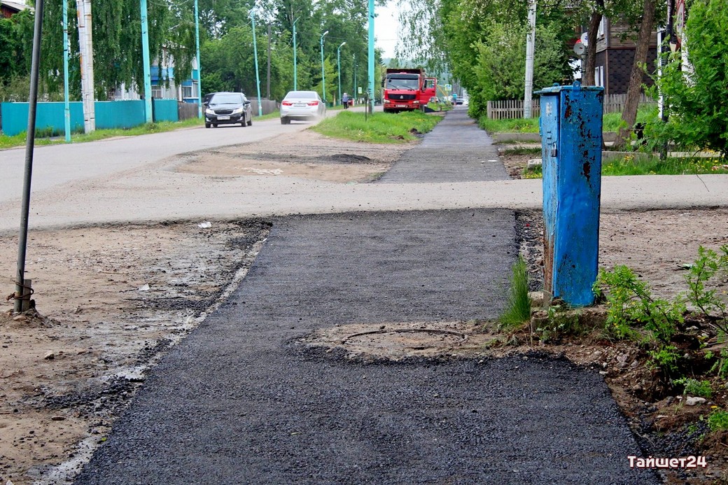 На центральной улице посёлка Юрты Тайшетского района — Советской — асфальтируют пешеходные дорожки.