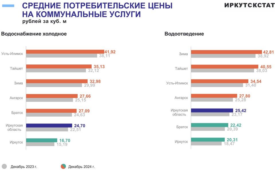Кстати говоря, по итогам 2024 года холодное водоснабжение в Тайшете стоит в два раза больше, чем в Иркутске, водоотведение – тоже.