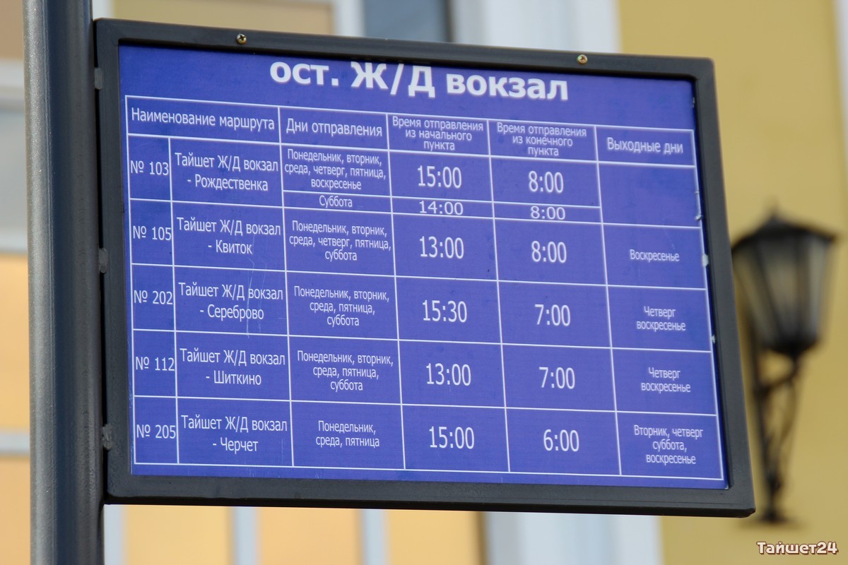 Начальный (конечный) остановочный пункт с автостанции по улице Октябрьской перенесли на железнодорожный вокзал станции Тайшет.