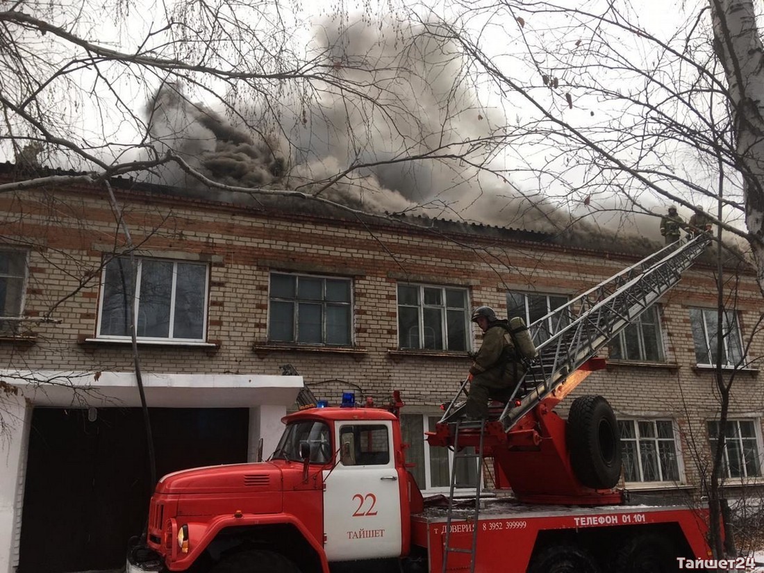 Сегодняшний пожар в двухэтажном административном здании по улице Ленина в Тайшете удалось ликвидировать только к полудню.