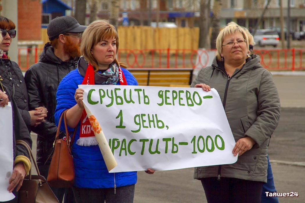 Митинг против вырубки деревьев на территории Тайшетского ЦПКиО прошёл сегодня на площади «Юбилейной».