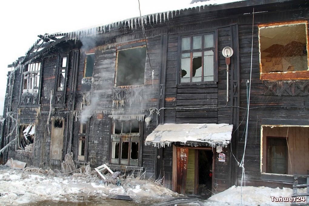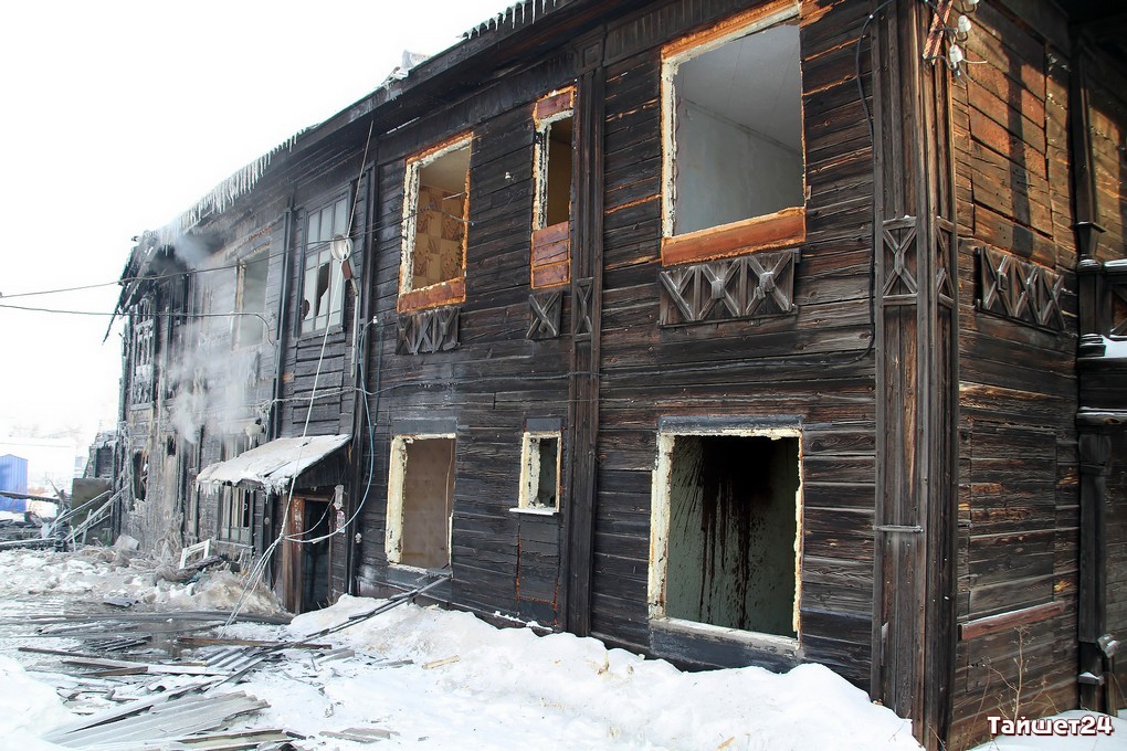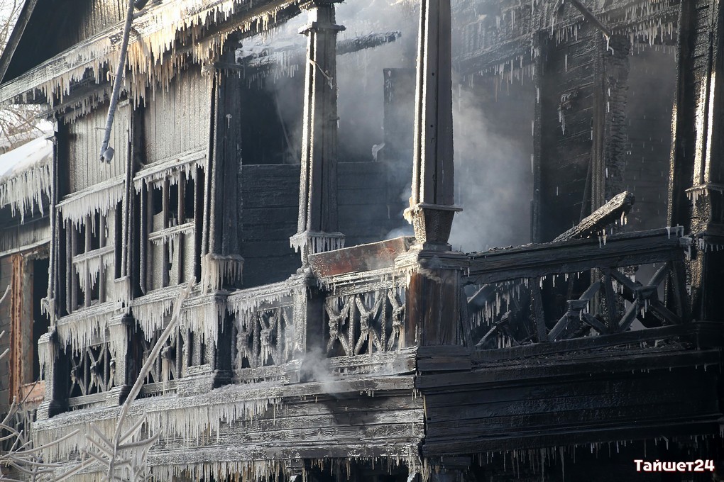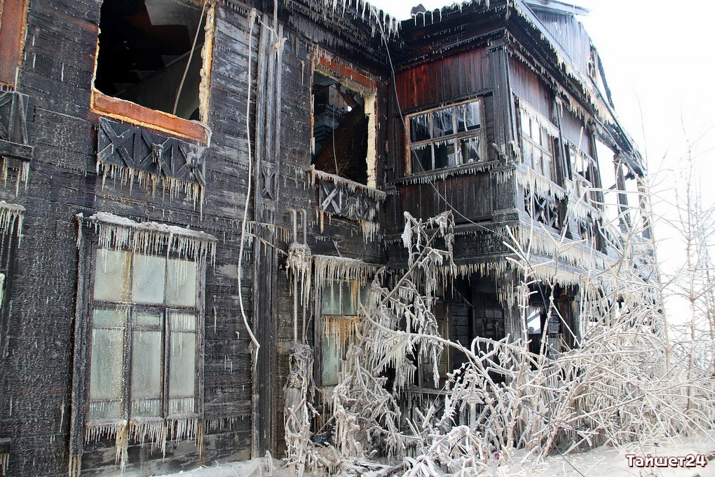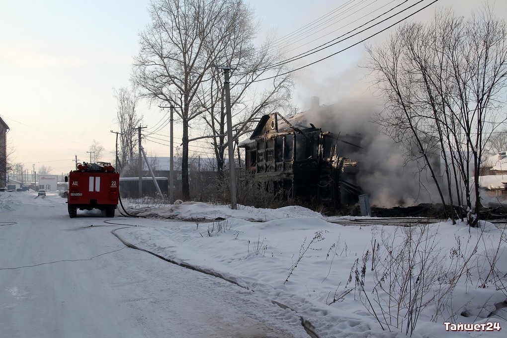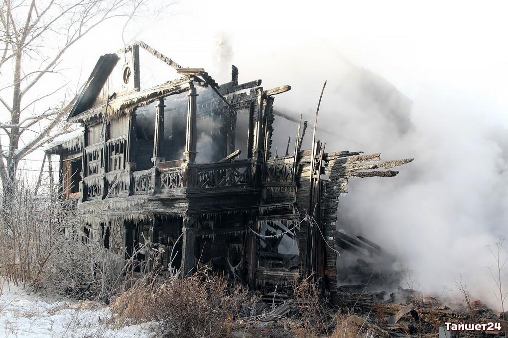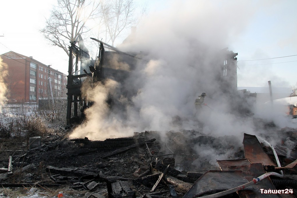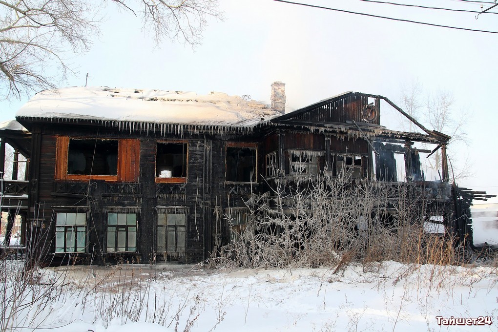Двухэтажный дом по улице Зои Космодемьянской, освобождённый жильцами по программе переселения из ветхого жилья буквально пару дней назад, сгорел в новогоднюю ночь в Тайшете.