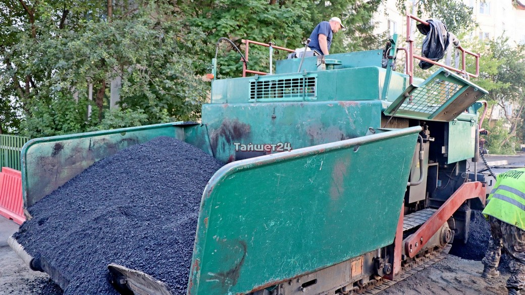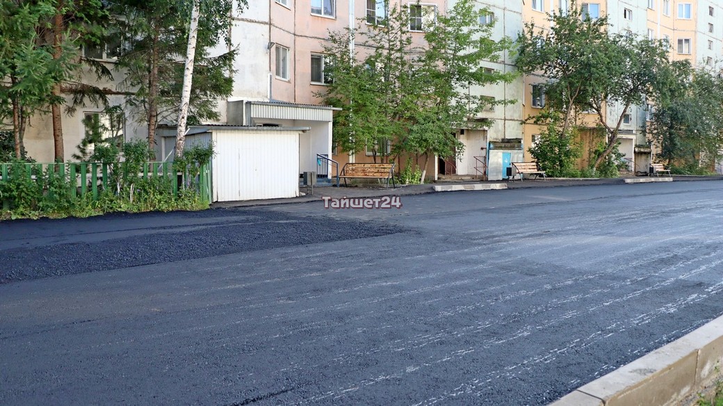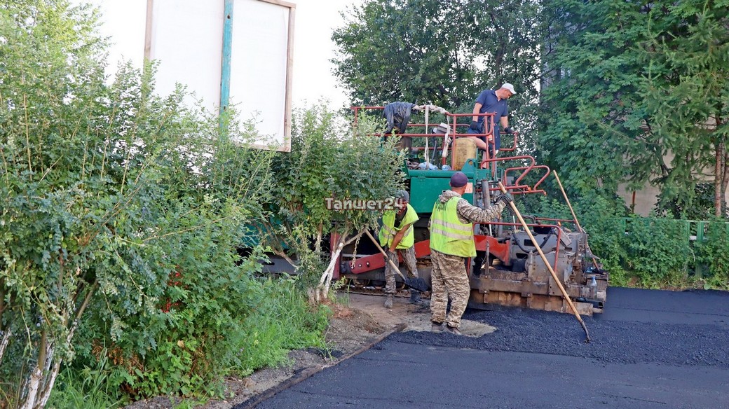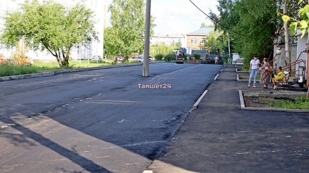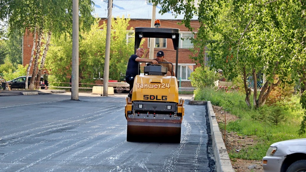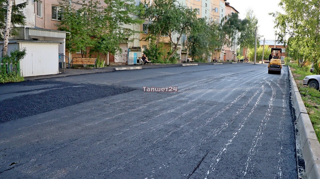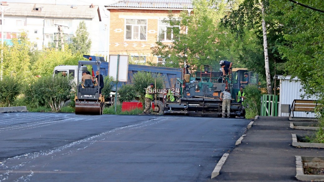 Управились за день. Сегодня утром в Тайшете началось асфальтирование двора дома №9 в микрорайоне Новом. К вечеру работы почти завершены.