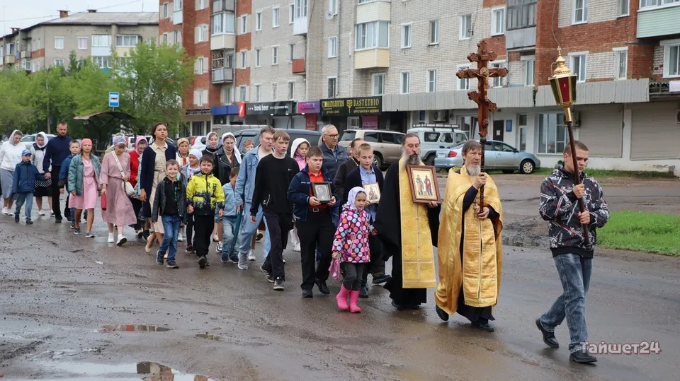 В Тайшете сегодня, 12 июля, состоялся Крестный ход – от храма «Всех скорбящих Радость» (улица Суворова) до храма святых апостолов Петра и Павла (улица Пушкина).