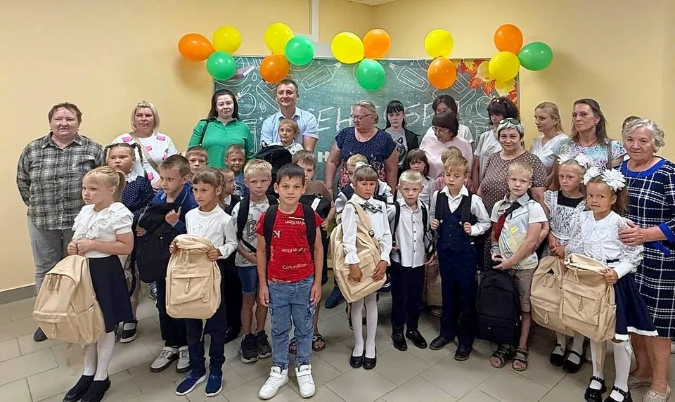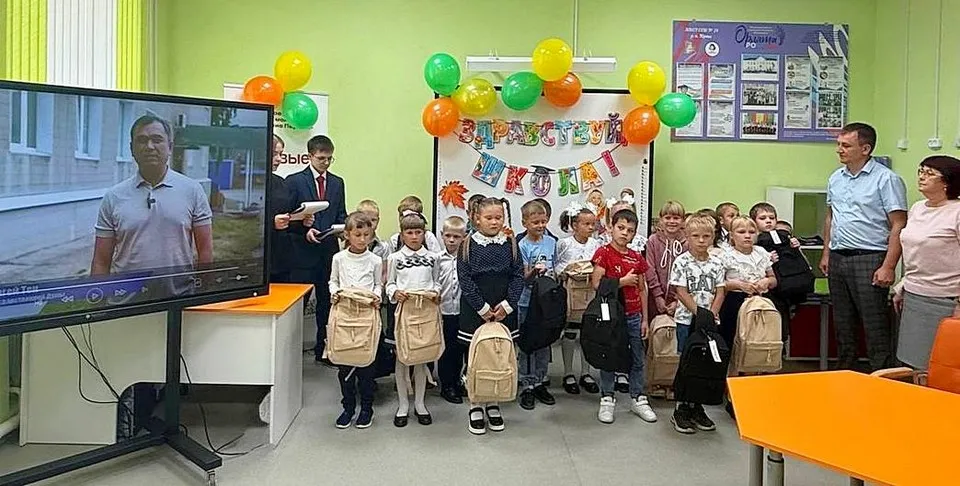 42 два первоклассника получили подарочные. Каждый набор включал в себя школьный портфель, а также полный комплект канцелярских товаров: ручки, карандаши, тетради, линейки, ластики и другие необходимые для учёбы предметы.