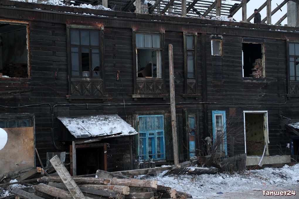 В самом центре Тайшета — на улице Суворова — уже несколько дней дней демонтируют двухэтажный дом, попавший под программу расселения ветхого и аварийного жилья.