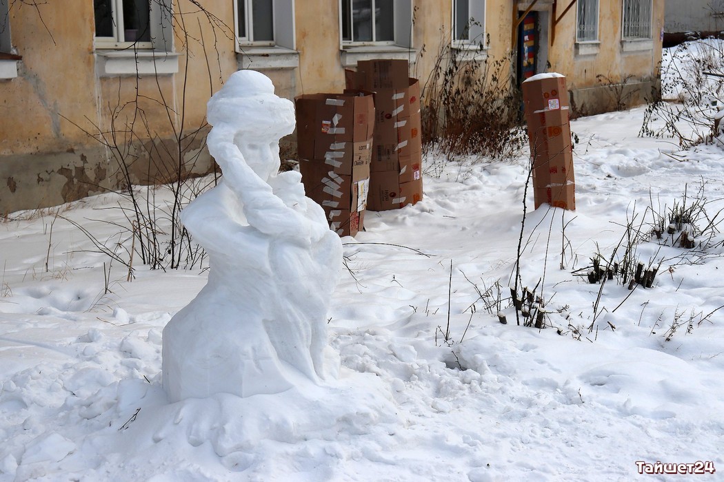 Начиналось всё очень хорошо. Жильцы дома в течение нескольких дней по вечерам лепили фигуры из снега. В итоге в субботу были готовы Дед Мороз, Снегурочка, зайчик и камин. Но стоило только мастерам ненадолго отлучиться, как на горизонте появились «тайшетоненавистники» и снесли голову Снегурочке.