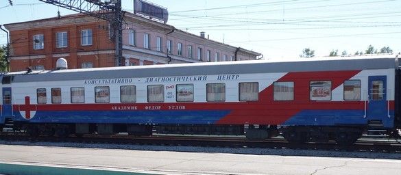 Поликлиника на колёсах «Академик Фёдор Углов» хорошо известна многим жителям Тайшета. Этот поезд, состоящий из десяти модернизированных вагонов, курсирует по ВСЖД с 2010 года.