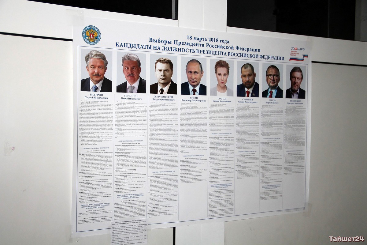 В выборах президента Российской Федерации, состоявшихся 18 марта, приняло участие более половины зарегистрированных на территории Тайшетского района избирателей. Участковые комиссии в настоящее время ведут подсчёт голосов, а некоторые из них уже доставили результаты голосования в Тайшетскую территориальную избирательную комиссию.