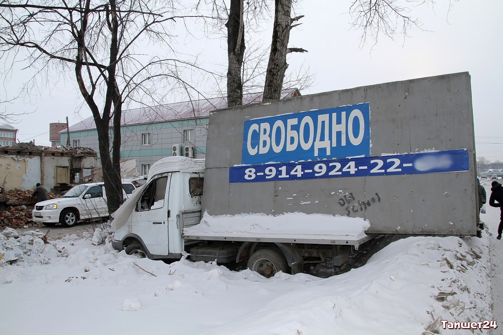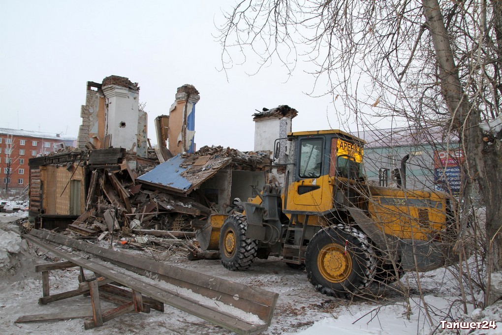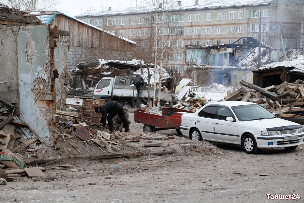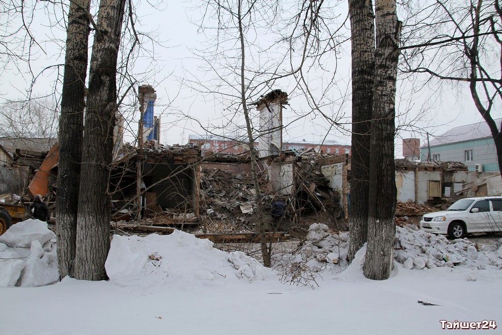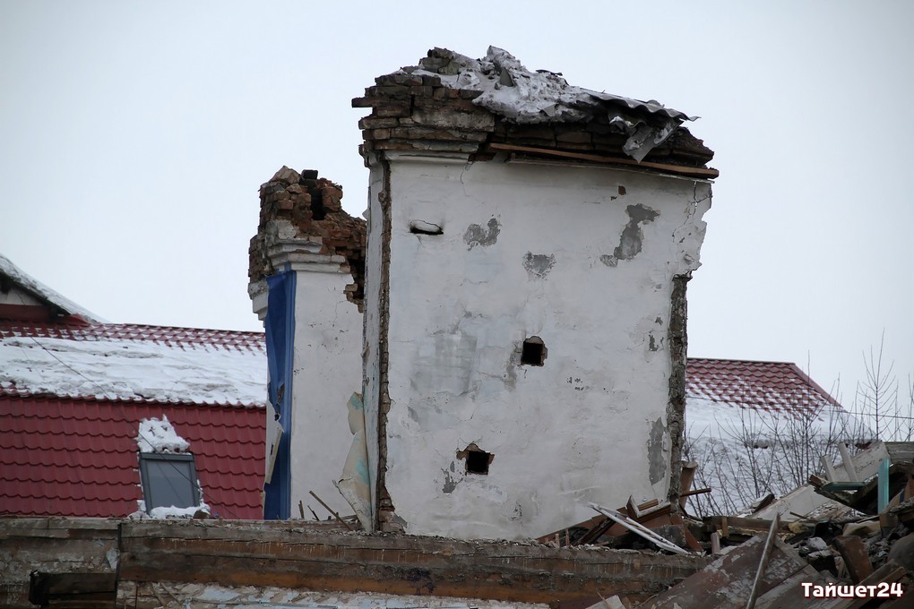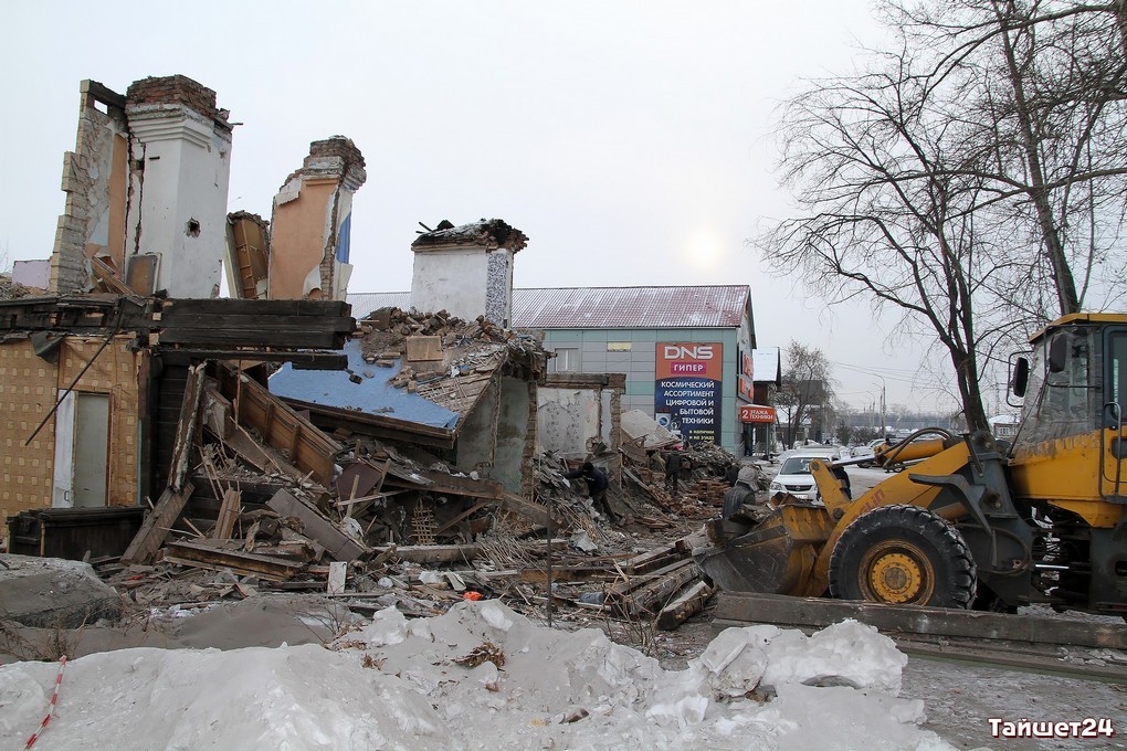 Недавно расселённый двухэтажный дом в самом центре Тайшета активно пошёл в расход. Неунывающие тайшетцы на развалинах, образовавшихся после демонтажа внешних стен, добывают кирпич — крепкий, надёжный и такой же вечный, как многое оставшееся в наследство с суровых советских времён.