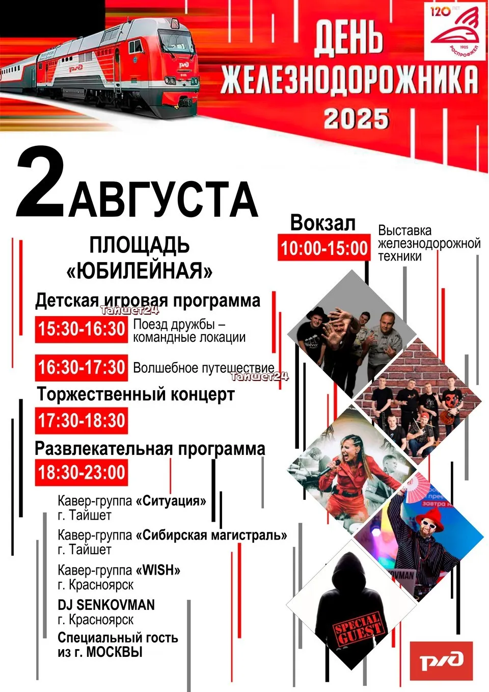 Жителей Тайшета 2 августа приглашают на праздничные мероприятия, посвящённые празднованию Дня железнодорожника (0+).