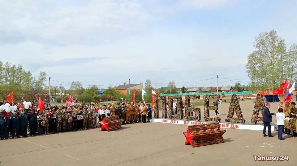 На площади Юбилейной в Тайшете сегодня прошёл митинг, посвящённый 80-оеию Великой Победы. Мероприятие объединило жителей всех возрастов — малышей до пожилых горожан.