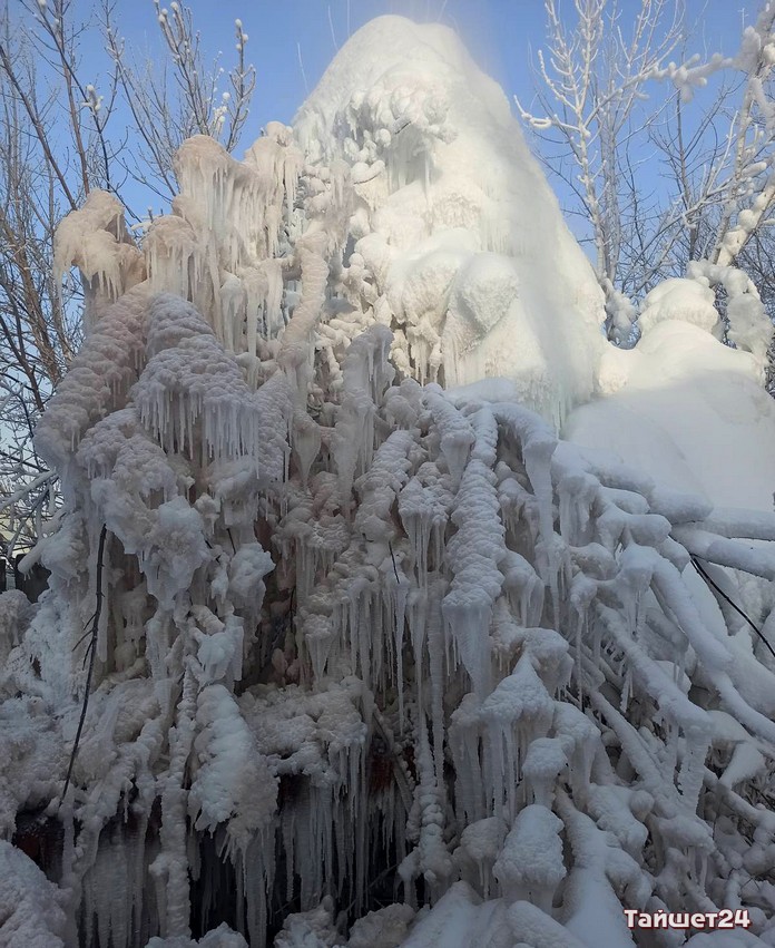 Вблизи пятиэтажного дома №258 по улице Ленина внезапно в преддверии самых лютых морозов прорвало трубу. На месте жилищно-коммунальной аварии моментально выросли восхитительные сталактиты. Правда, не радовали они жильцов домов, оставшихся без воды более, чем на сутки.